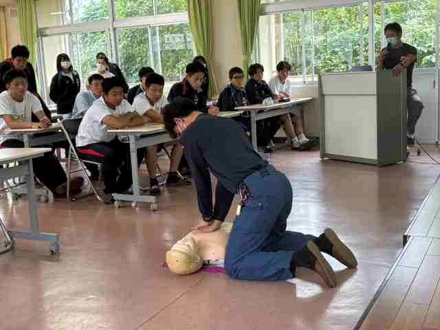 10/22(水)普通科スポーツ総合コース3年生、普通科キャリア総合コース2年生、福祉科2年生の3クラスを対象に救命講習会を開催しました。有明広域行政事務組合消防本部様より5名の講師の方に来ていただきま...
