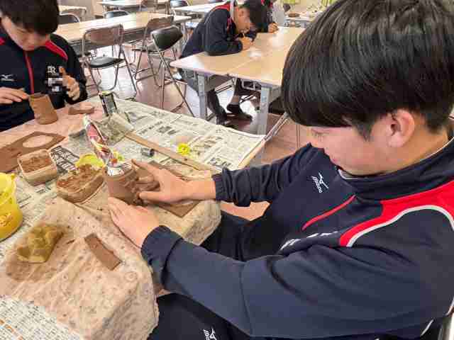 1月21日に普通科3年生が荒尾市社会福祉事業団の方々からご指導いただき陶芸制作に臨みました。コップやお皿、小物入れなど慣れない作業に戸惑いながら制作しました。出来上がった作品は、卒業式に届くことになっ...