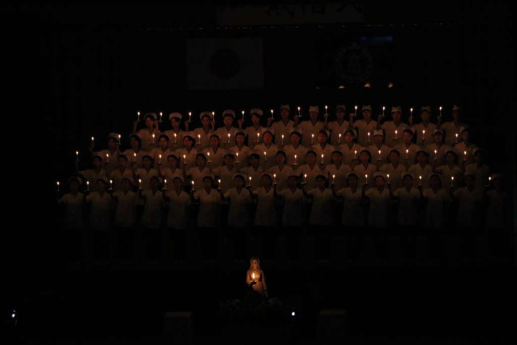 看護の道を志す生徒たちがナースキャップを戴き、医療人としての第一歩を踏み出しました。