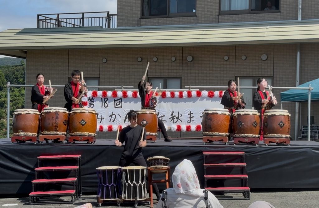 2025.10.06 部活&学科Topics 9月28日に桜山ふれあいげんき祭り、10月5日にみかんの丘秋祭りにて演奏をしてきました。以前は夏祭りで演奏をすることが多かったのですが、暑さの影響もあるのでしょうか、最近はこの時期での演奏が多くなりました。少ない部員ですが、聴いてくださる皆様に元気と笑顔を!をモットーに精一杯叩かせて頂きました。 このような演奏の機会をいただきました、桜山げんきかい様、特別養護老人ホーム みかんの丘様、ありがとうございました。