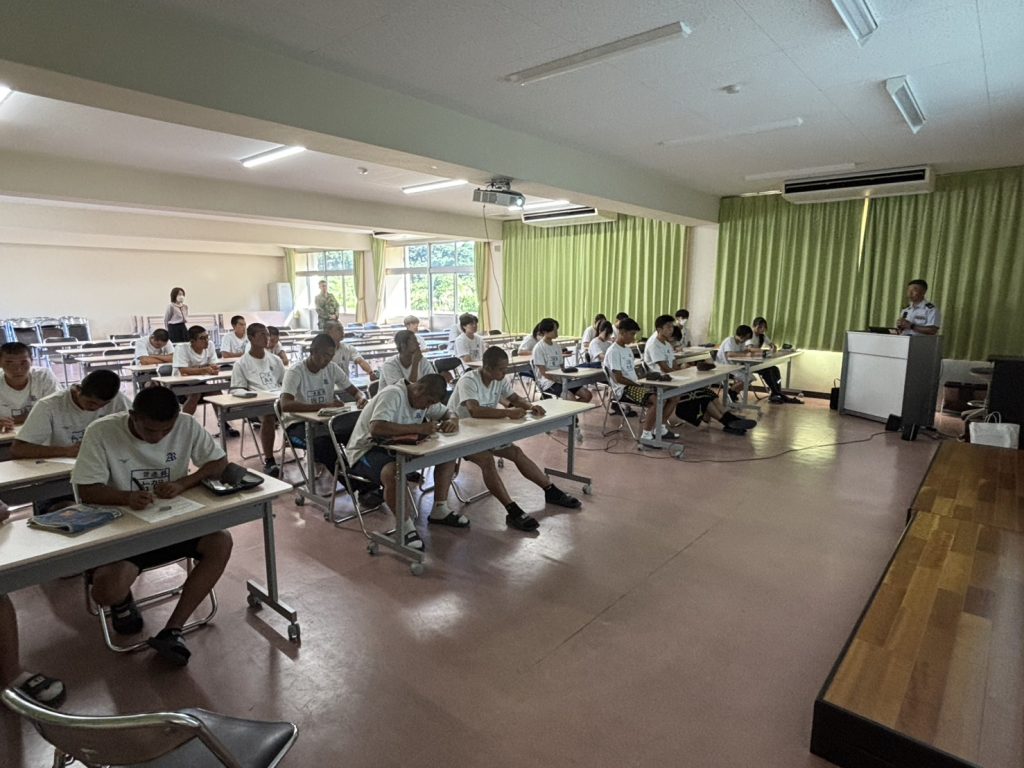 10月10日に普通科キャリア総合コース、スポーツ総合コースの2年生を対象に自衛隊の方から災害時の支援活動などの講話が行われました。熊本、能登での地震で実際に行われた活動内容や様子を写真や動画を用いて説明していただき、そこから得られた教訓を私たちにわかりやすくお話ししてくださいました。